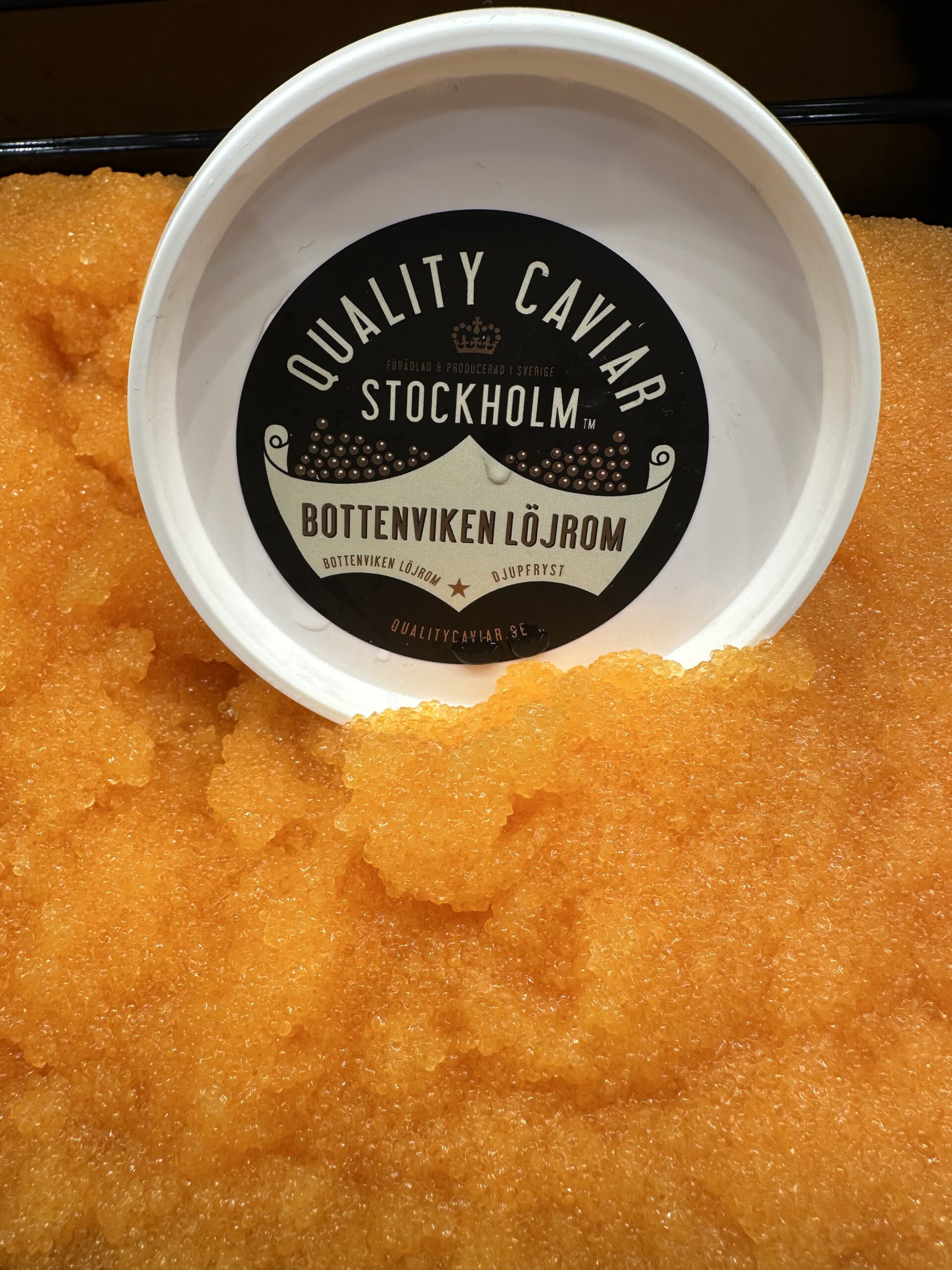 Utforska en svensk delikatess med Bottenviken löjrom, omsorgsfullt framtagen från den svenska siklöjan (Coregonus Albula). Under fiskesäsongen mellan oktober och december fångas denna delikata löjrom längs sträckan från Sverige till Finland. Med en unik orange/gul färg och mindre korn än vår amerikanska premium löjrom, påminner vår Bottenviken löjrom om Kalix löjrom i både smak, storlek och färg.